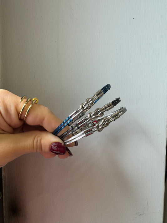 Bracciale in tessuto con nodo in acciaio